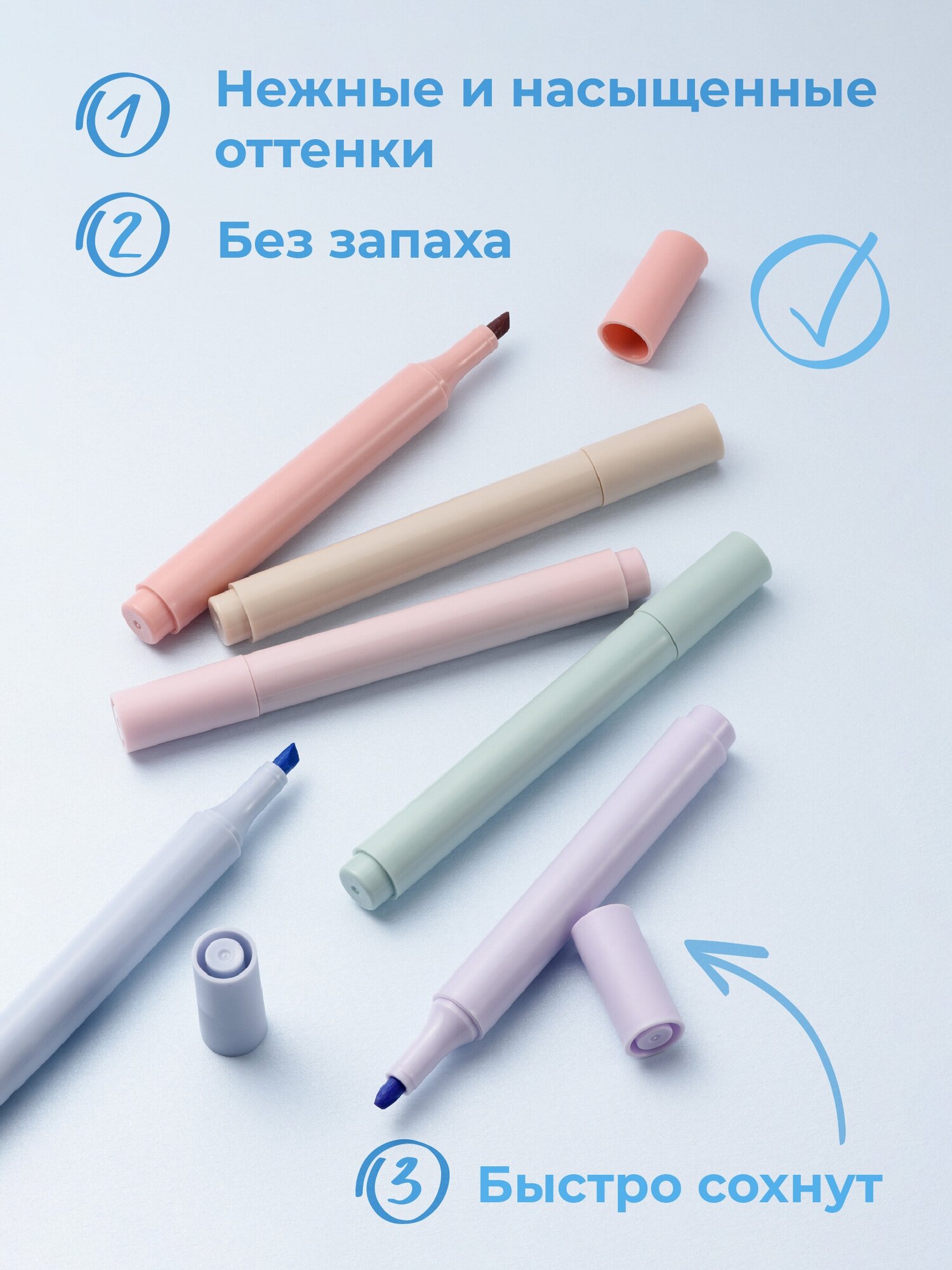 10 цен на Маркеры текстовыделители, Parchment, Выделители текста пастельные/ Цветовыделители для школы и офиса, Набор 6 шт