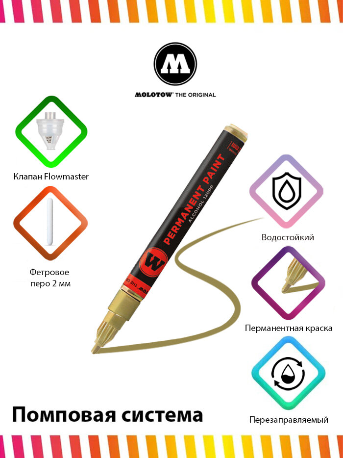 Маркер с краской Molotow Permanent Paint 120PP 120401 золото 2 мм универсальный информация: