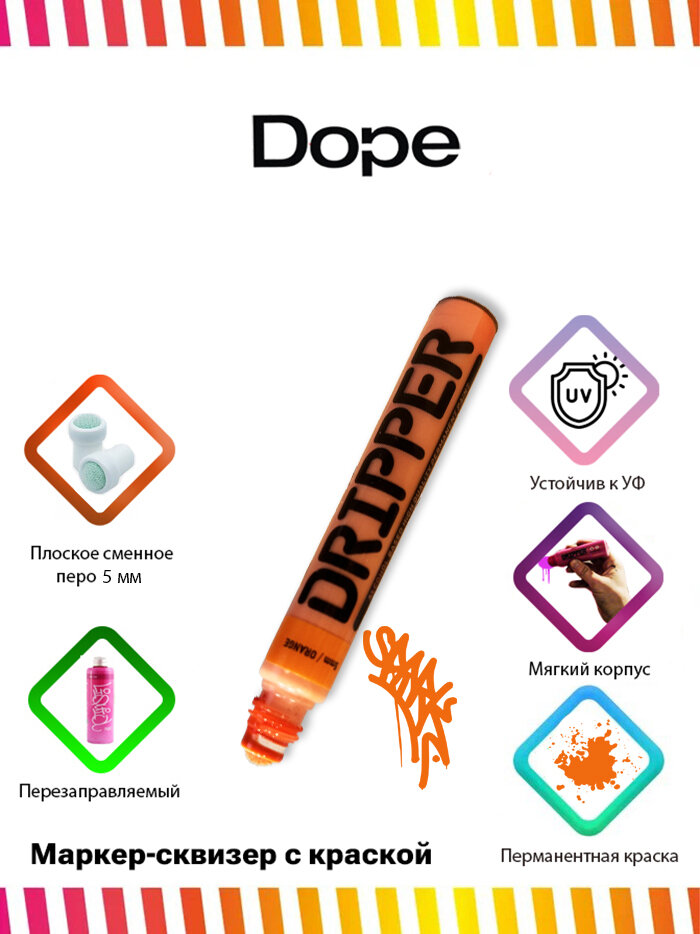 Маркер сквизер для граффити и теггинга Dope Dripper 5 мм оранжевый информация: