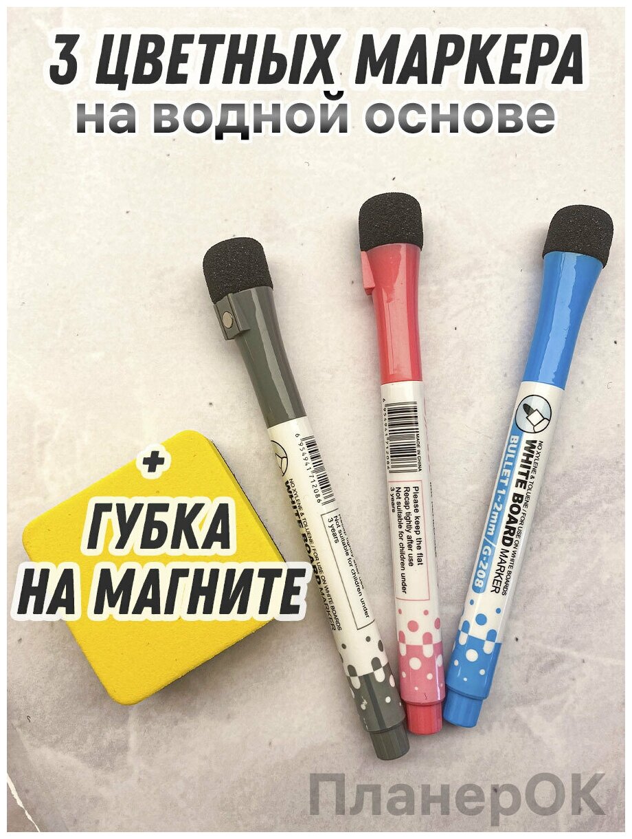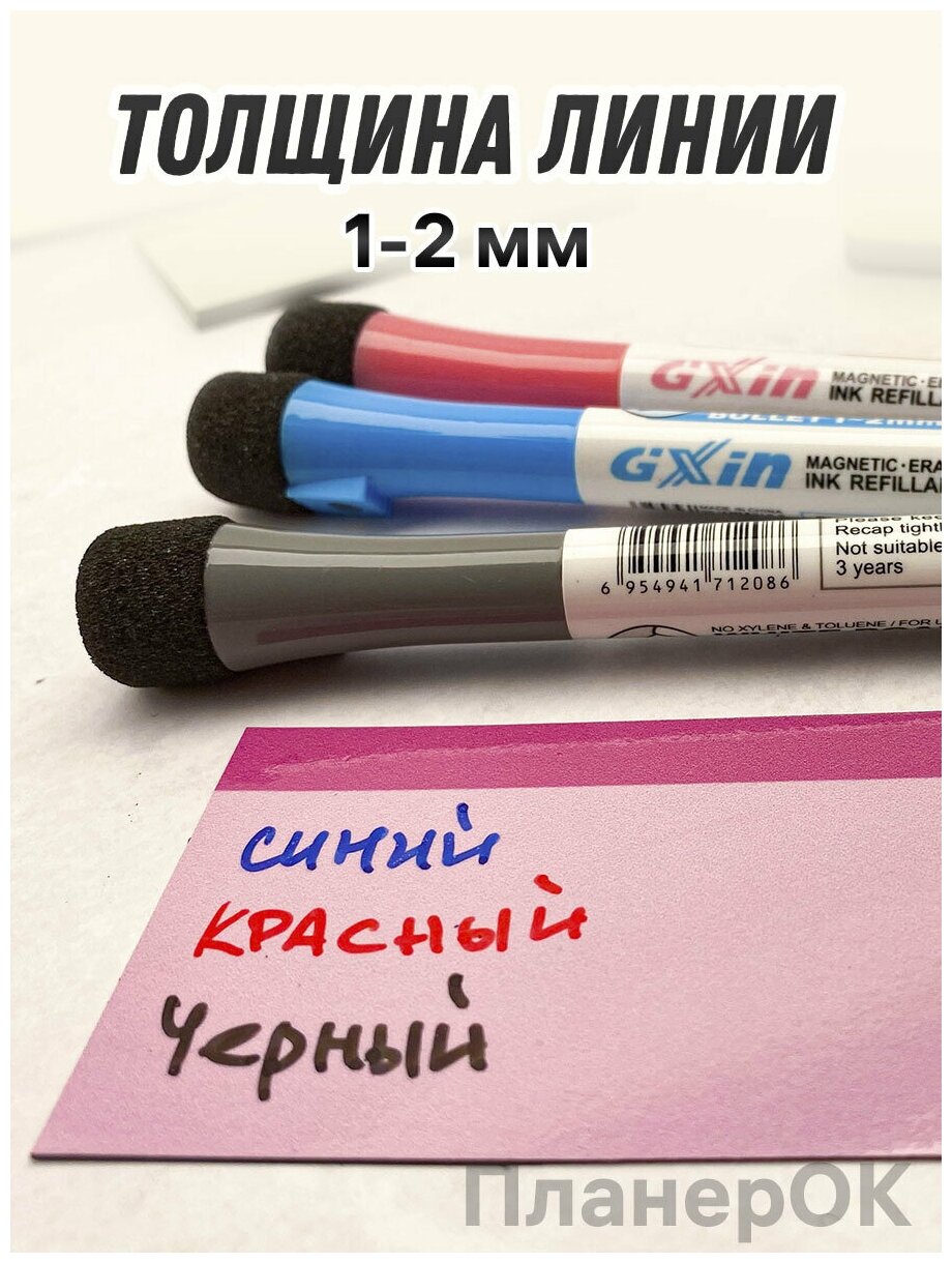 Тонкие маркеры 3 шт. для маркерной доски или планера (на магнитиках и с губками на колпачках) GXin + губка на магнитике информация: