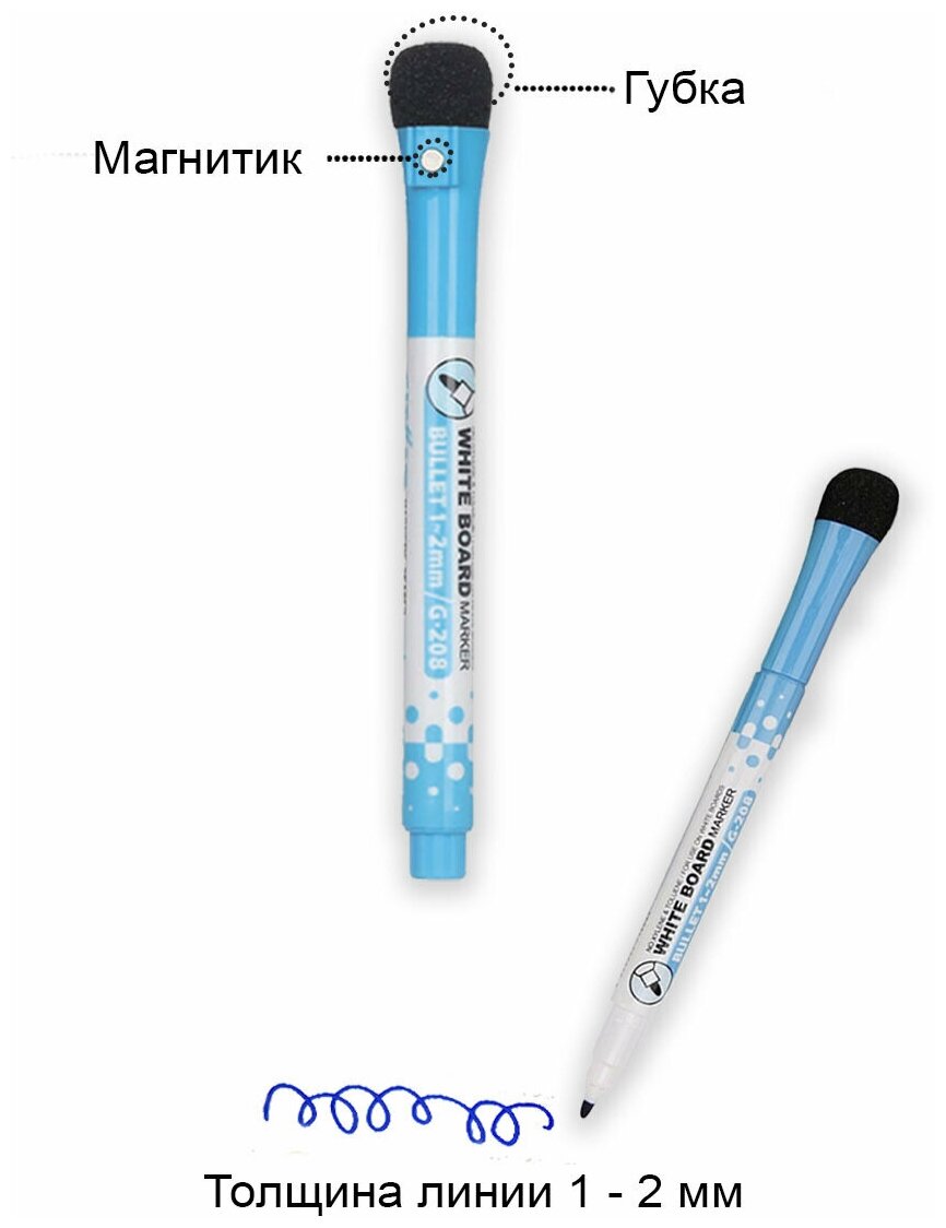 Тонкие маркеры для магнитного планера или маркерной доски (на магнитике, с губкой на колпачке) Чёрный + Синий информация: