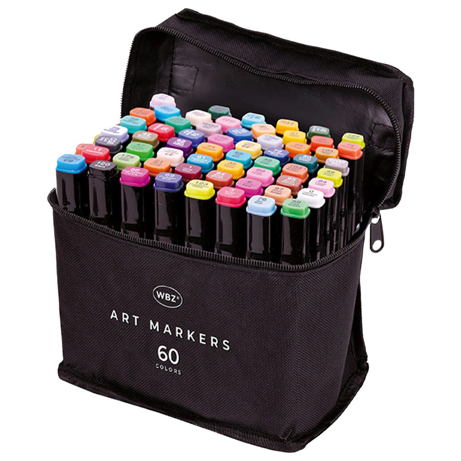 10 цен на Маркеры для скетчинга, фломастеры для рисования двусторонние набор 60 штук, в текстильном боксе, WBZ, 152574