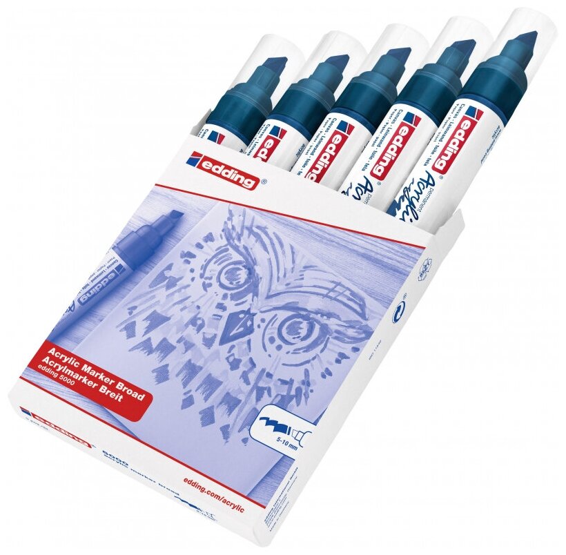 Маркер акриловый edding 5000, широкий скошенный наконечник, 5-10 мм Генцианово-синий