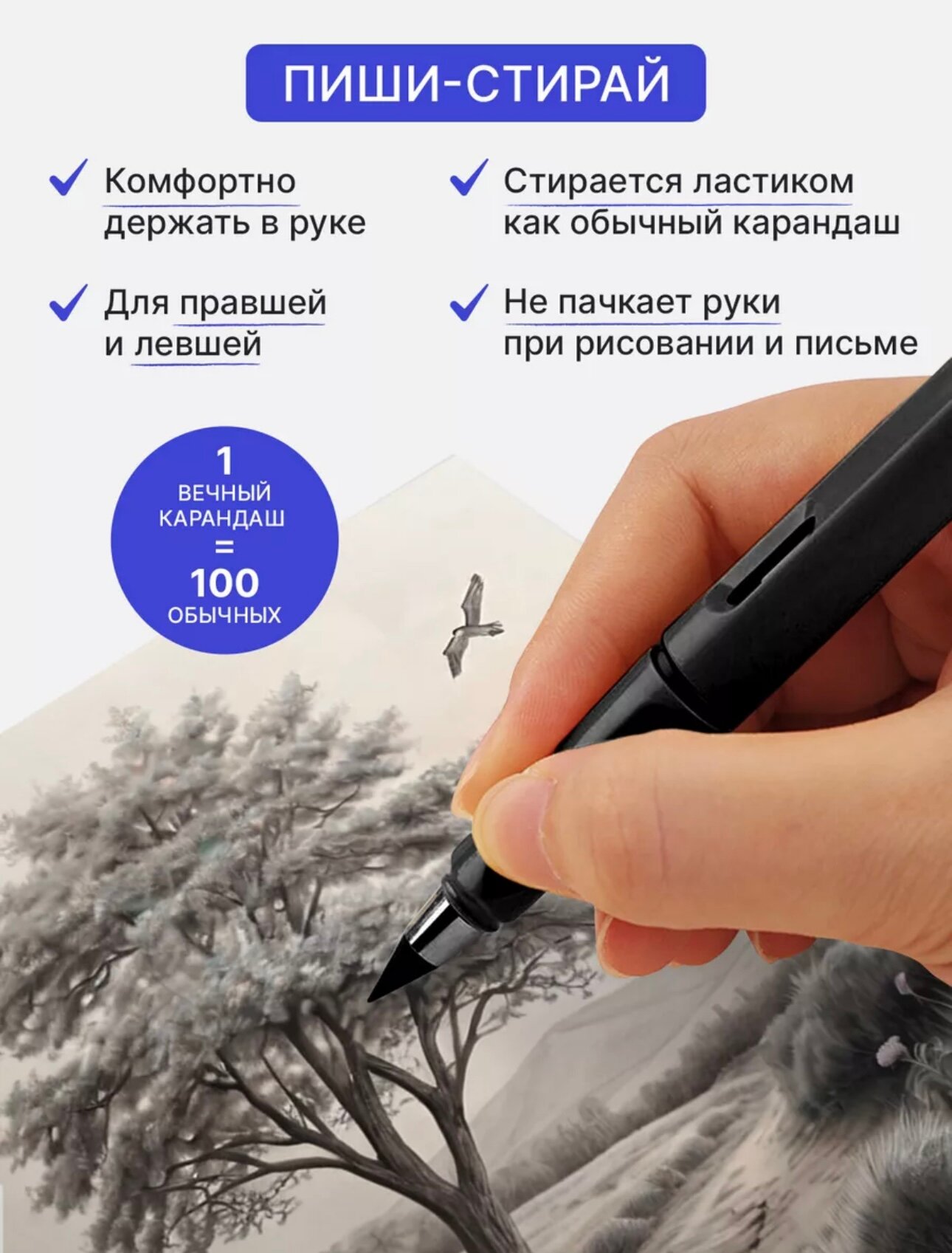 Отзывы на Набор черных вечный карандашей с ластиком, 3 шт. / Карандаши черные для рисования