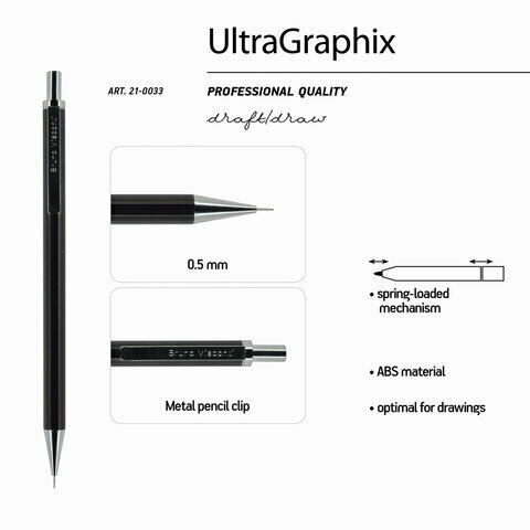 10 цен на Карандаш механический BRUNO VISCONTI UltraGraphix, металлический корпус ассорти, 0,3 мм, ластик, 21-0033