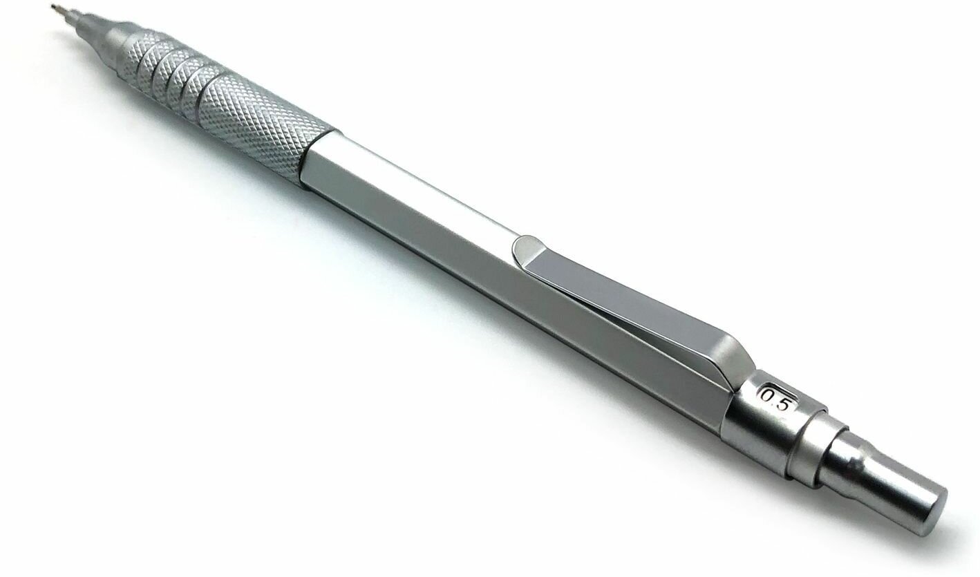 10 цен на Карандаш механический 0.5 мм с ластиком металлический серый