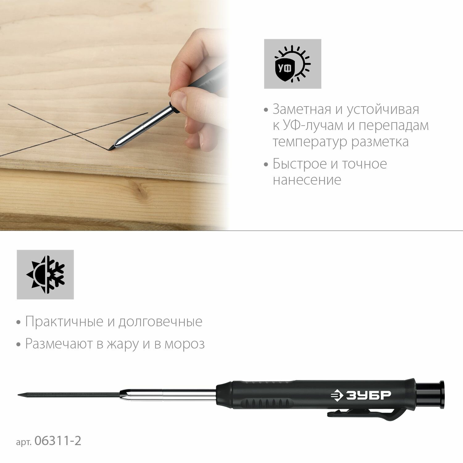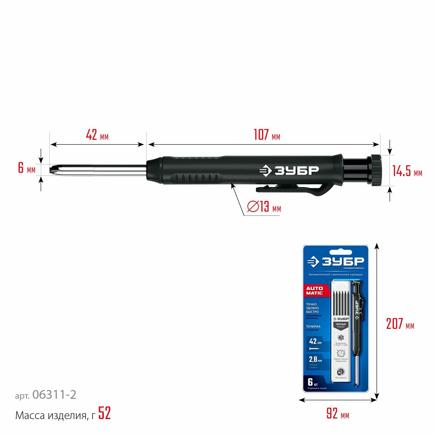 Автоматический строительный карандаш ЗУБР, красный, HB, 6 сменных грифелей, АСК, серия Профессионал информация:
