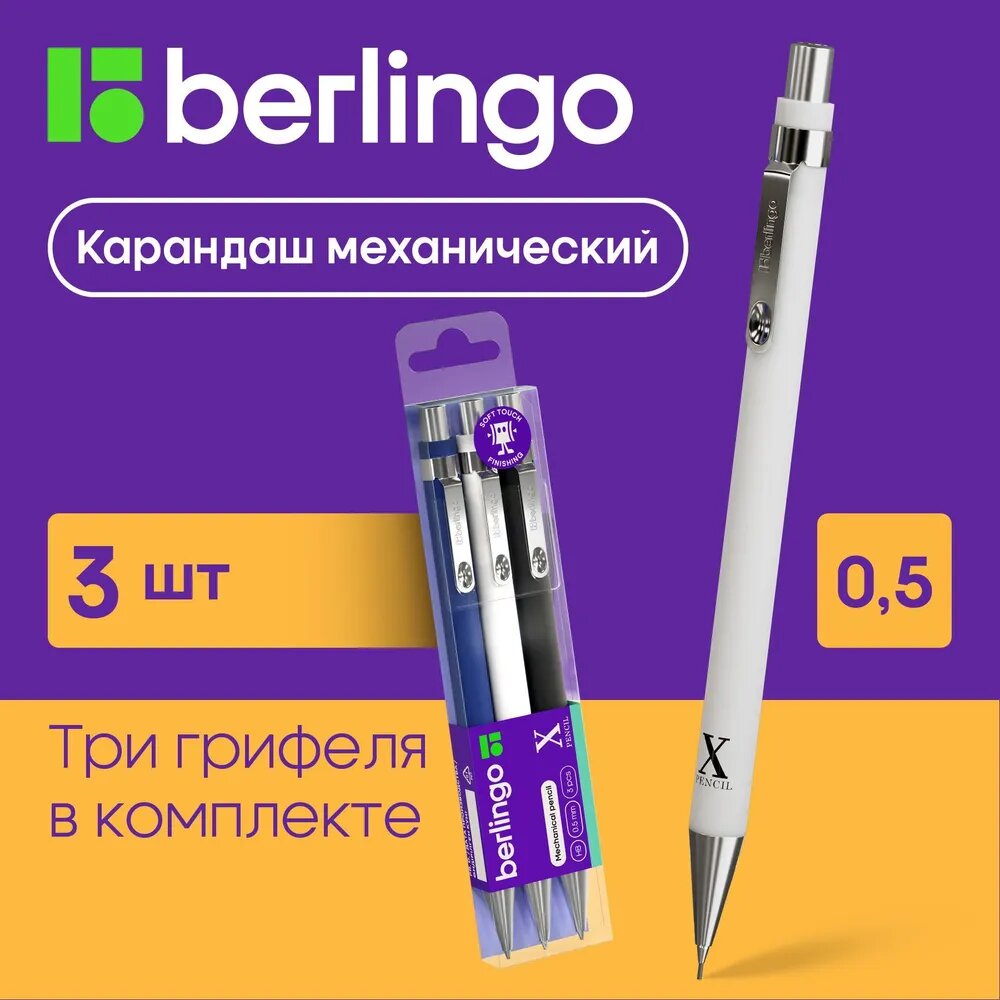 10 цен на Набор карандашей механических Berlingo "X", 0,5мм, с ластиком, 3 шт.