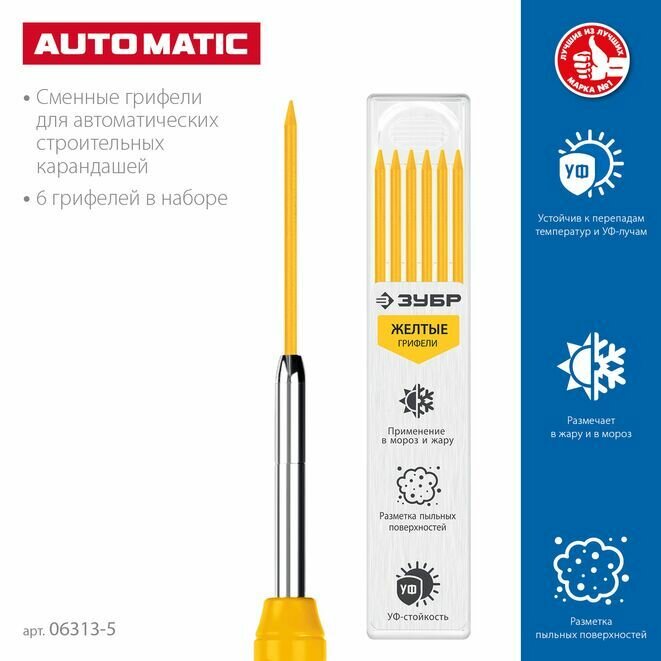 Сменные грифели для автоматического строительного карандаша ЗУБР 6шт, желтые 06313-5 информация: