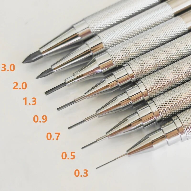 Отзывы на Механический карандаш металлический серебристый 0.3 0.5 0.7 0.9 1.3 2.0 3.0 мм, 6pcs 0.5mm leads