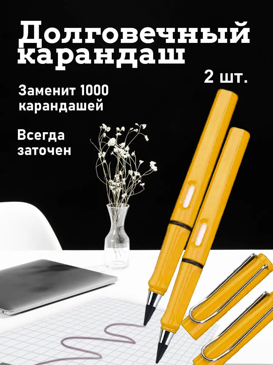 Вечный простой карандаш желтый, 2 штуки информация: