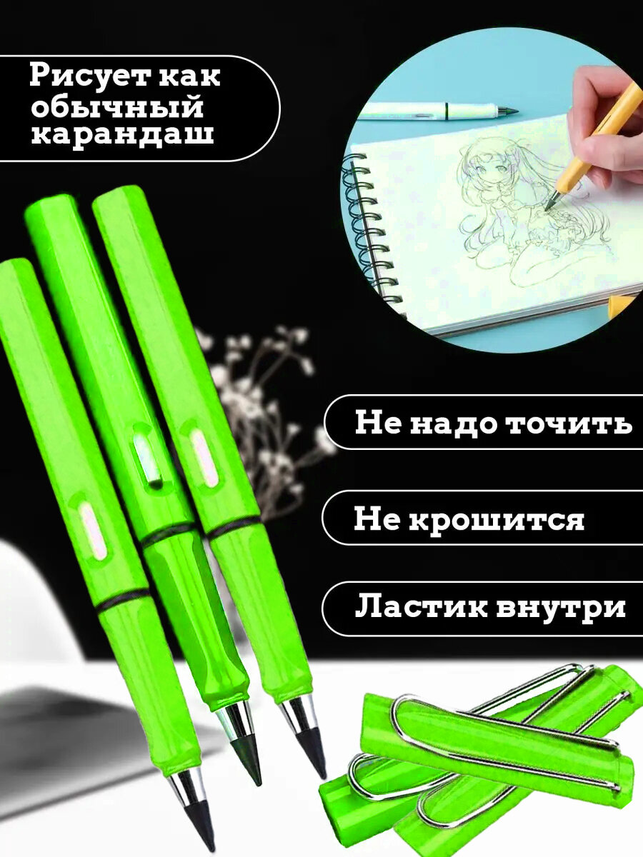 Вечный простой карандаш зеленый, 3 штуки информация: