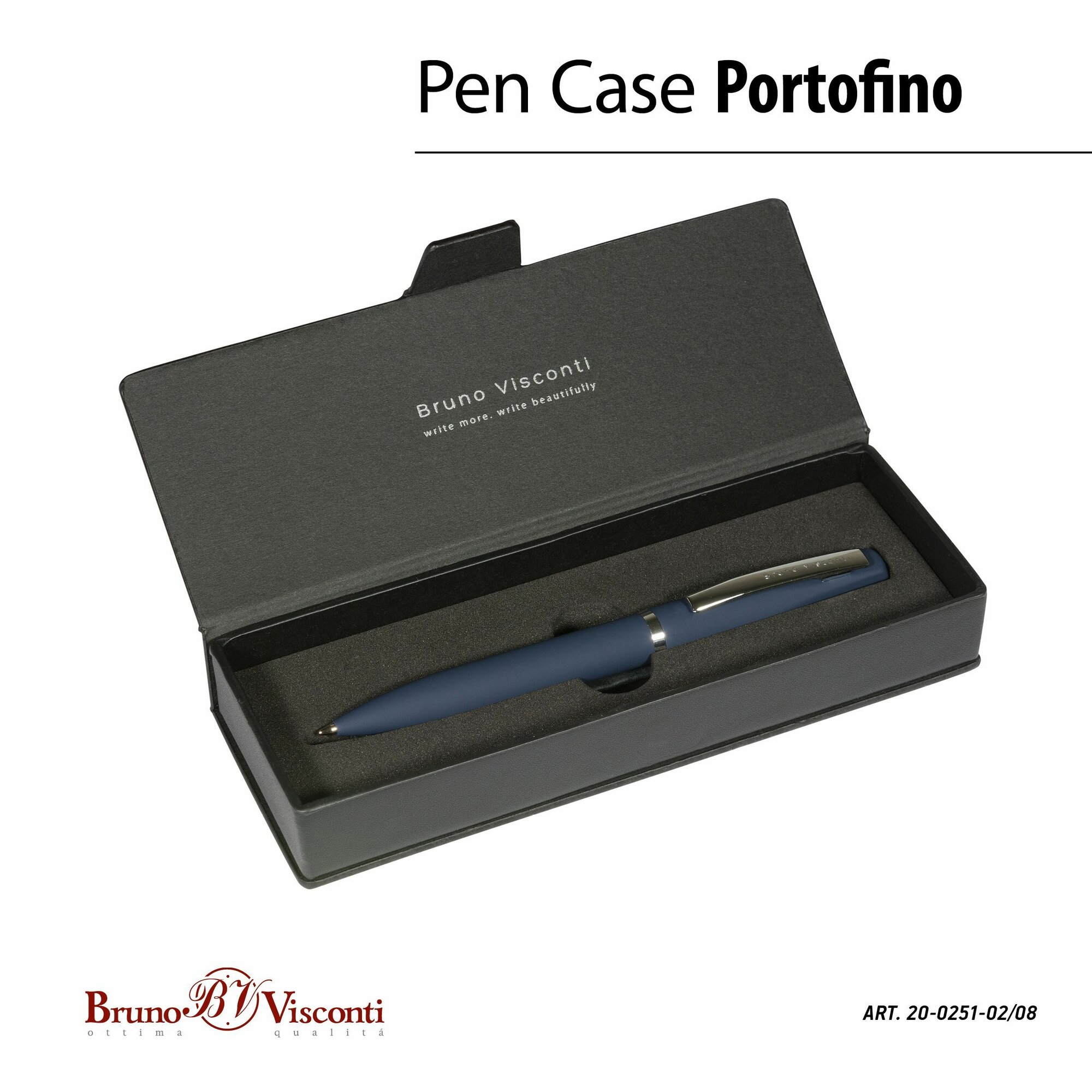 10 цен на Ручка BrunoVisconti шариковая автоматическая 1мм, синяя, в футляре из экокожи PORTOFINO (синий металлический корпус) Арт. 20-0251-02/08