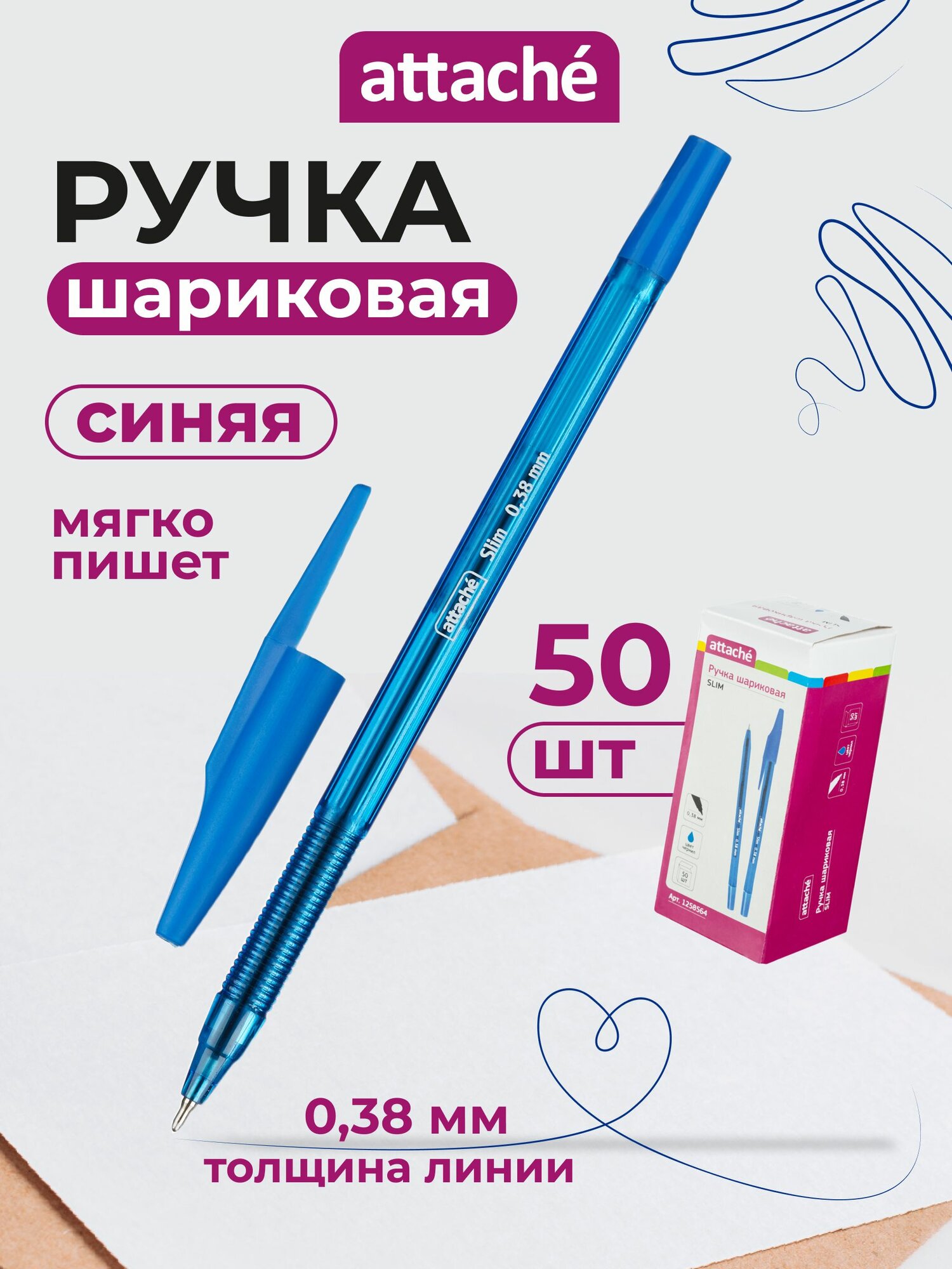 Ручки шариковые Attache, синие, линия 0,38 мм, набор 50 шт информация: