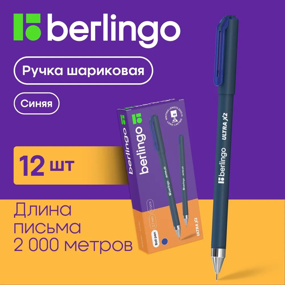 10 цен на Ручка шариковая Berlingo Ultra X2 синяя, набор 12 штук, толщина линии письма 0,5 мм