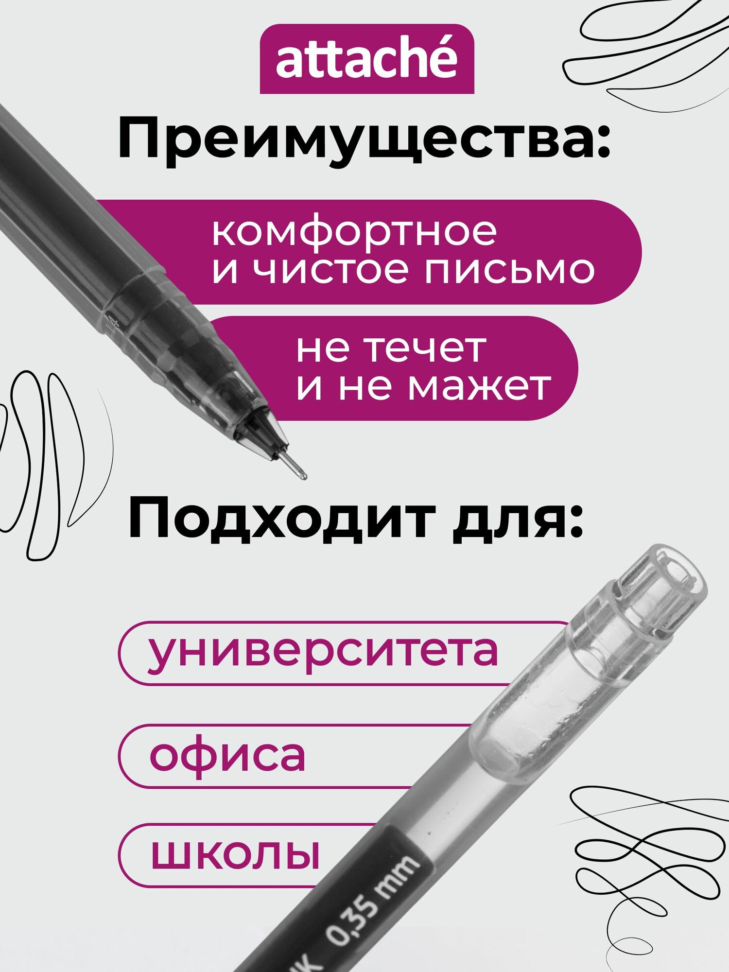 Ручки гелевые Attache, черные, линия 0.35 мм, набор 12 шт информация: