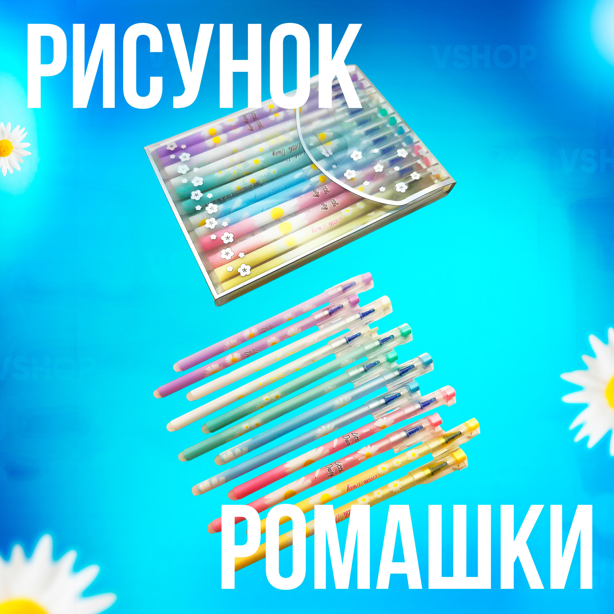 Набор из синих гелевых ручек Пиши-стирай для школы Ромашки 12шт информация: