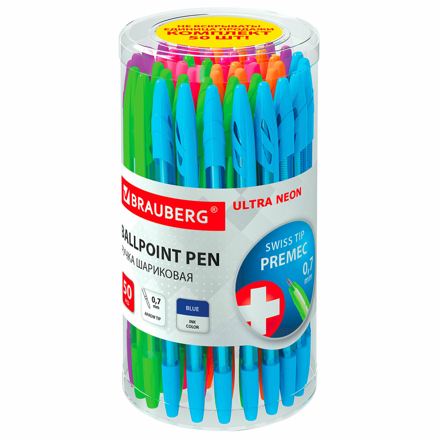 Ручка шариковая Brauberg Ultra Neon, Комплект 50 штук, Синяя, узел 0,7 мм, чернила Германия, 880399 информация: