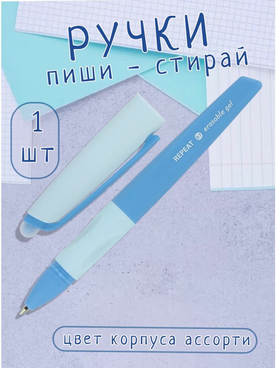 Ручка стираемая гелевая с эргономичным грипом BRAUBERG REPEAT, синяя, +3 сменных стержня, узел 0,7 мм, линия письма 0,5 мм, 143663 784 ₽