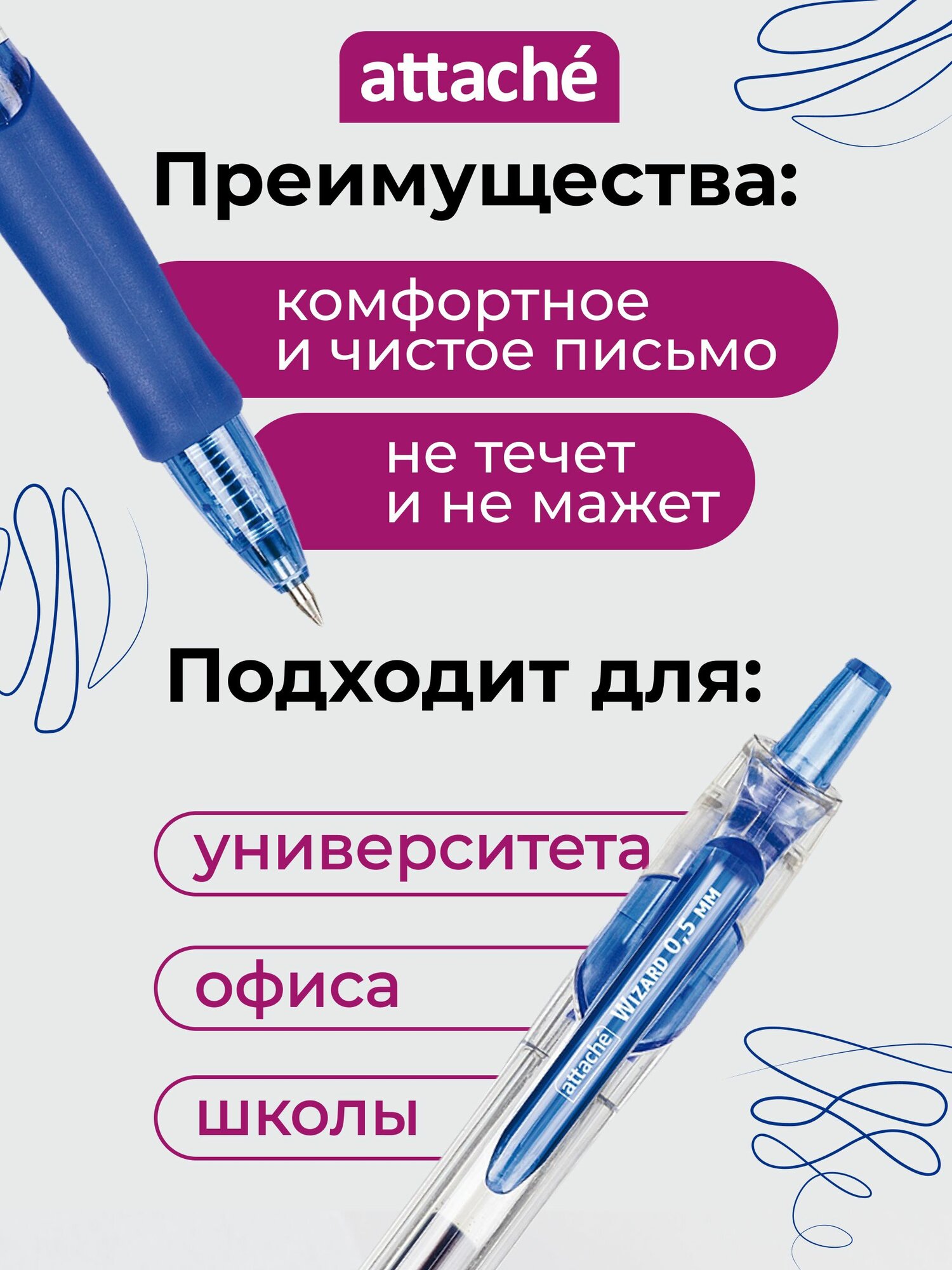Отзывы на Ручки гелевые Attache, автоматические, синие, линия 0.5 мм, набор 12 шт