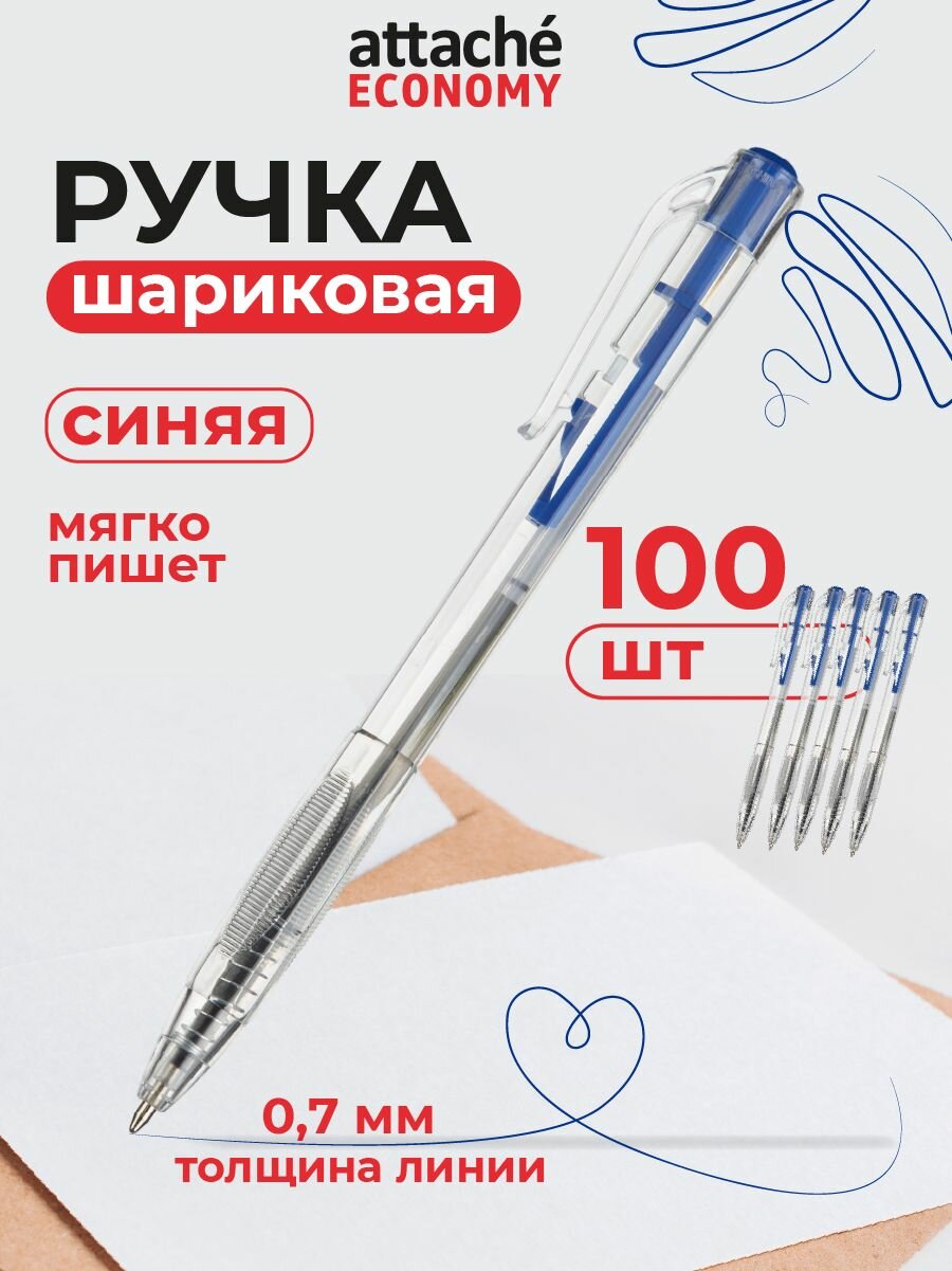 Отзывы на Ручки шариковые Attache Economy, автоматические, синие, линия 0,7 мм, набор 100 шт