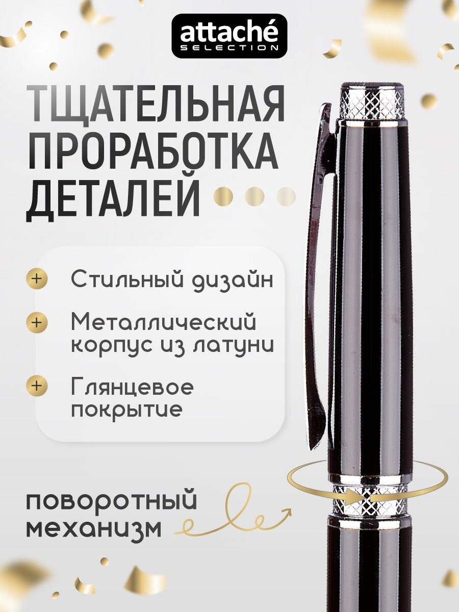10 цен на Ручка подарочная шариковая Attache Selection, автоматическая, металлическая, с поворотным механизмом, в футляре, синяя, толщина линии 0,7 мм
