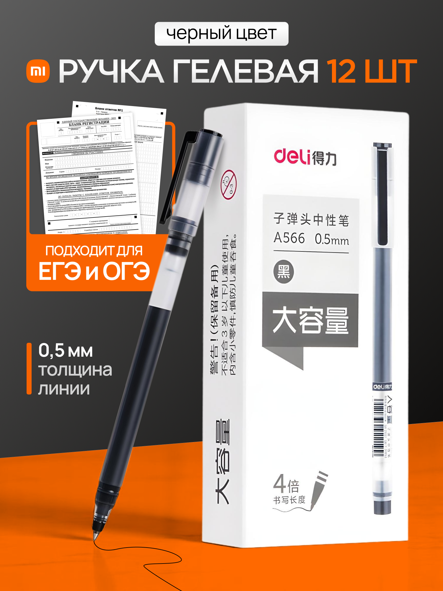 Гелевые ручки черные для школы, для ЕГЭ/ОГЭ Xiaomi Deli A566 (12 штук) информация: