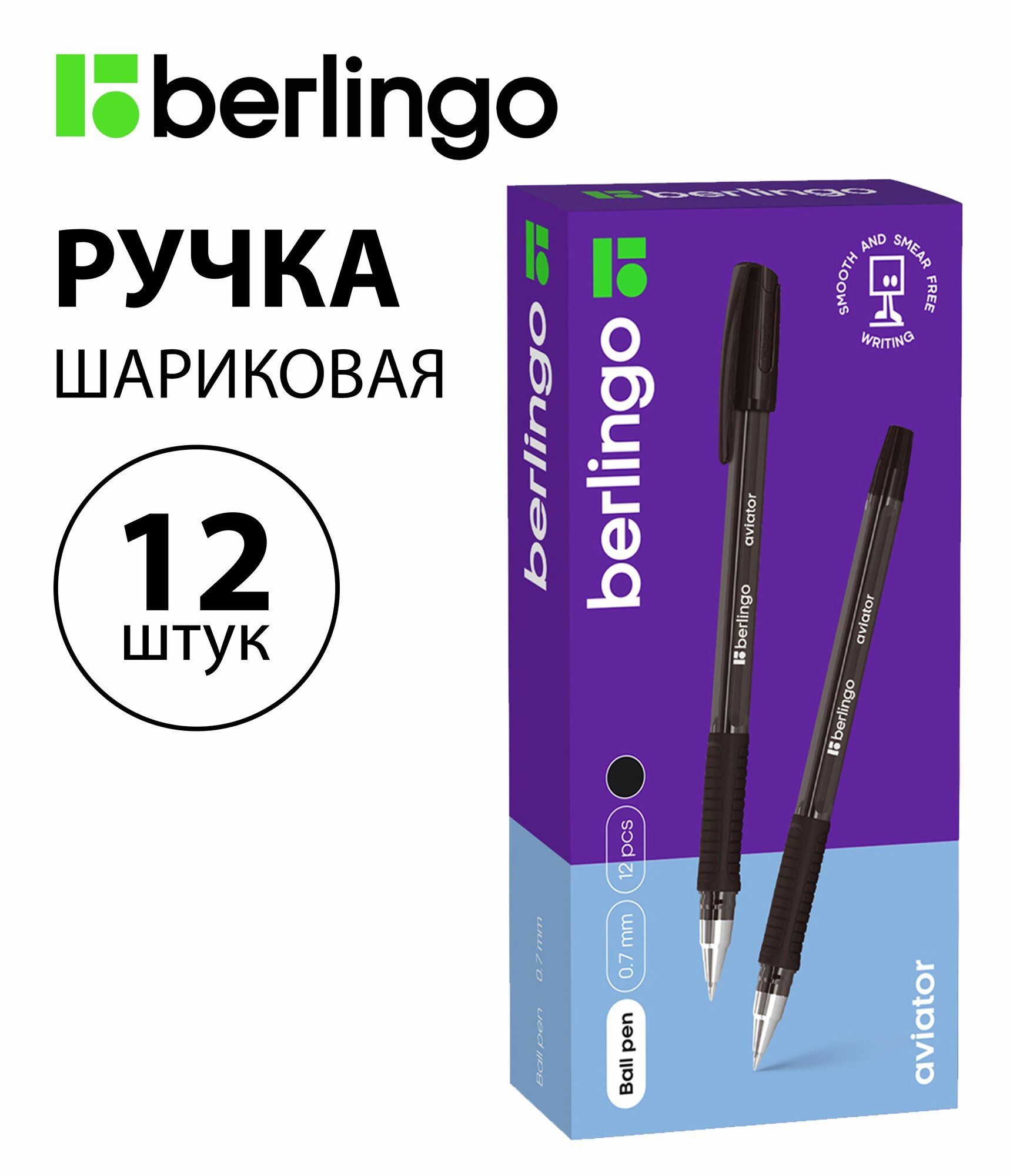 Отзывы на Набор 12 шт. - Ручка шариковая Berlingo "Aviator" черная, 0,7 мм, с грипом CBp_07508