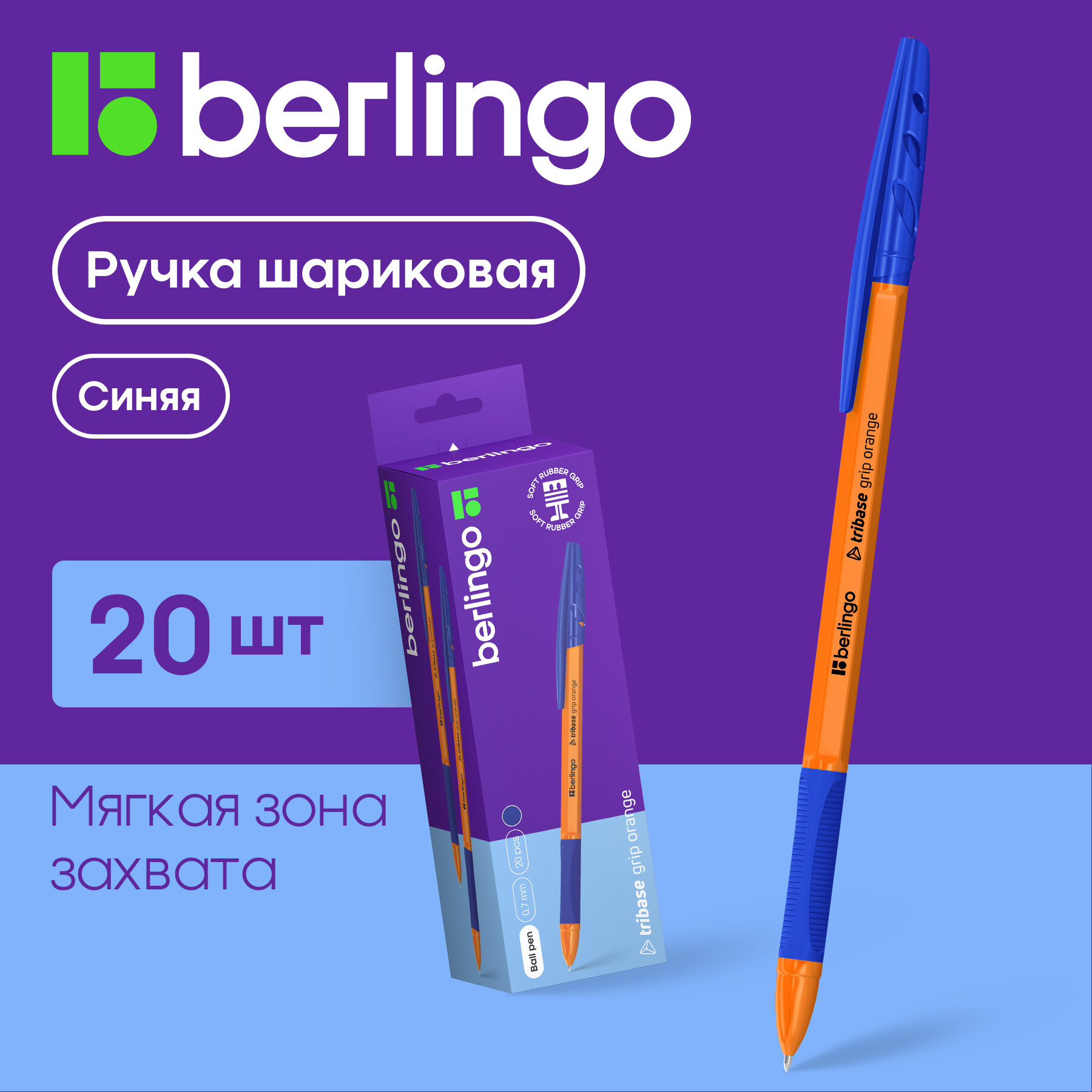 Отзывы на Ручка шариковая Berlingo "Tribase grip orange" синяя, 0,7мм, грип, 20шт, картонная коробка