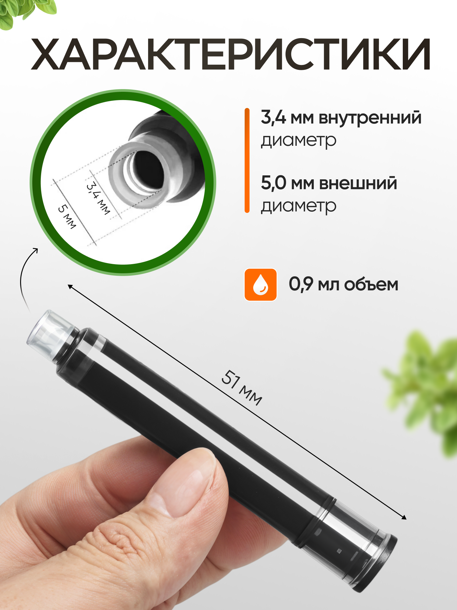 Чёрные картриджи для перьевой ручки 2,6 мм, 5 шт.