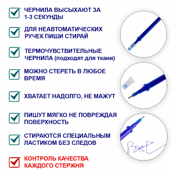 Отзывы на Стержни пиши стирай, 20 шт, для гелевых ручек стираемые синие чернила