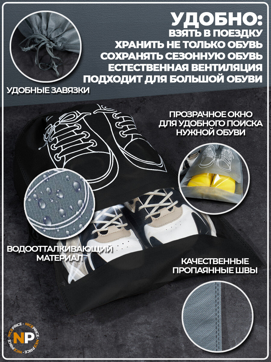 Мешки для хранения обуви большие 45х36 5 штук черные информация: