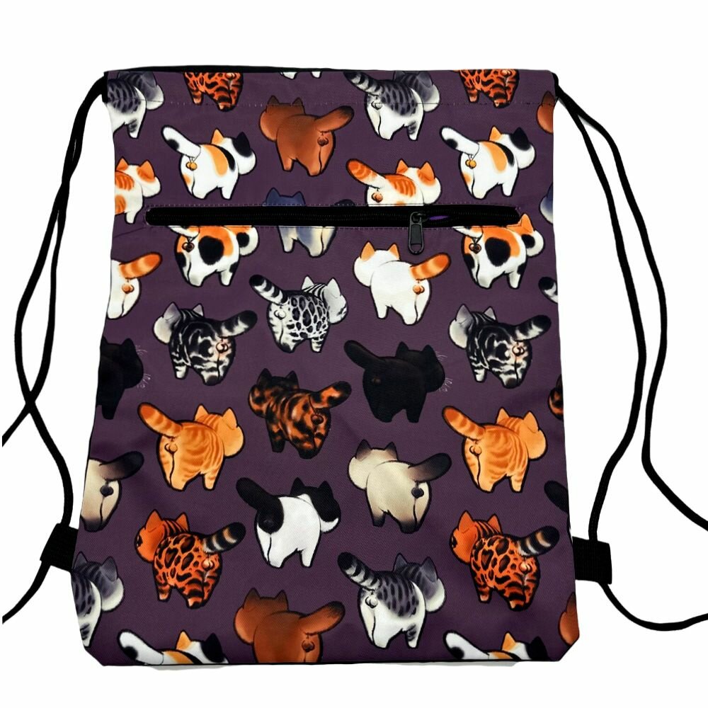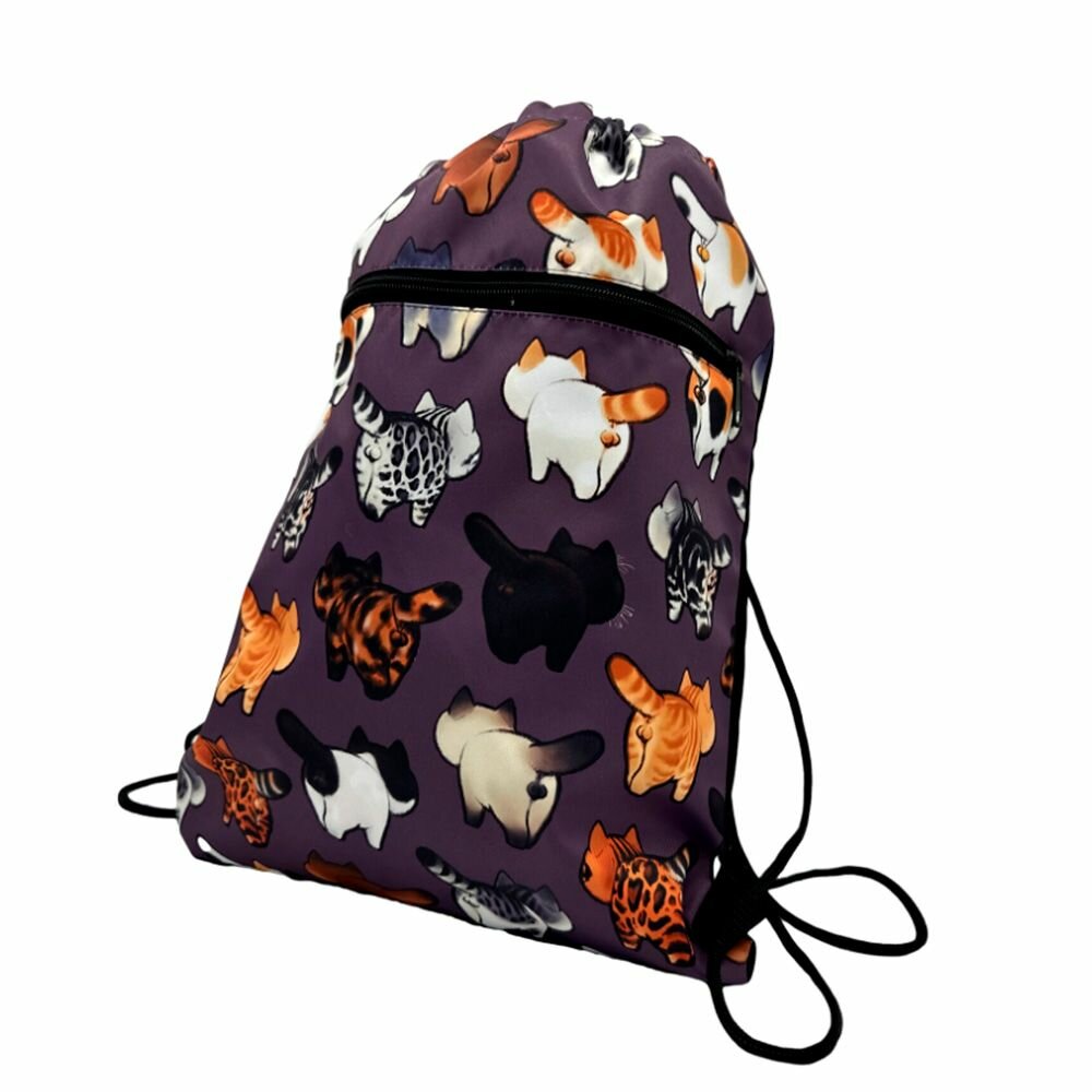 Мешок для сменки фиолетовый с молнией Котики с хвостами информация: