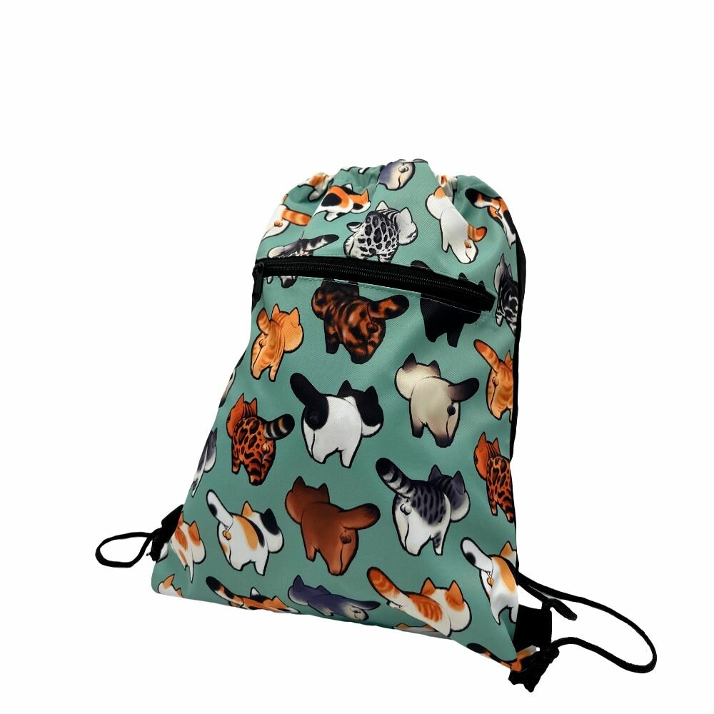 10 цен на Мешок для сменки бирюзовый с молнией Котики с хвостами