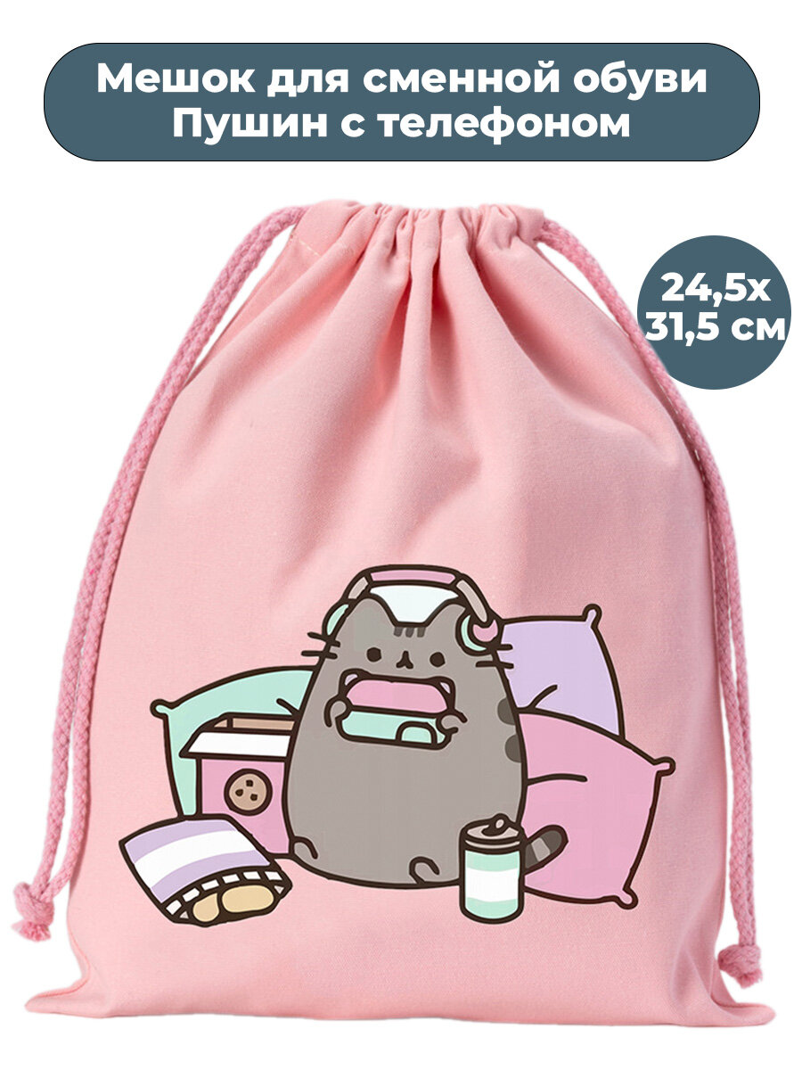 Отзывы на Мешок для сменной обуви кот Пушин с телефоном Pusheen розовый 24,5х31,5 см