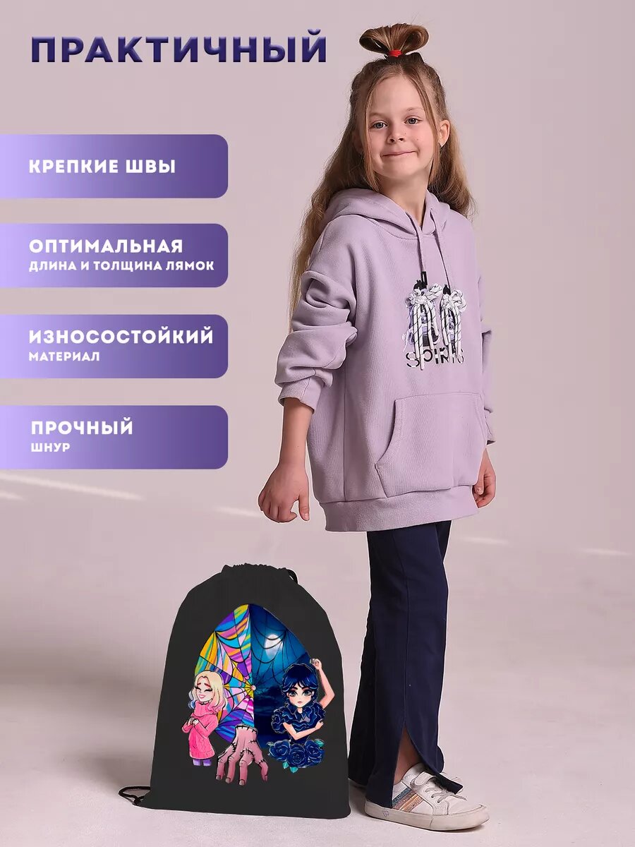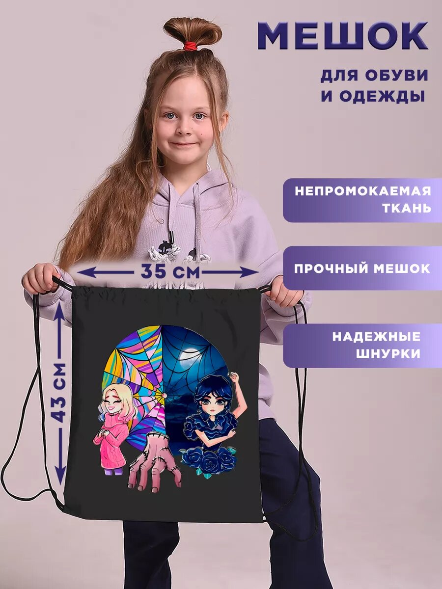 Мешок для обуви сменки девочек в школу Уэнсдей Wednesday информация: