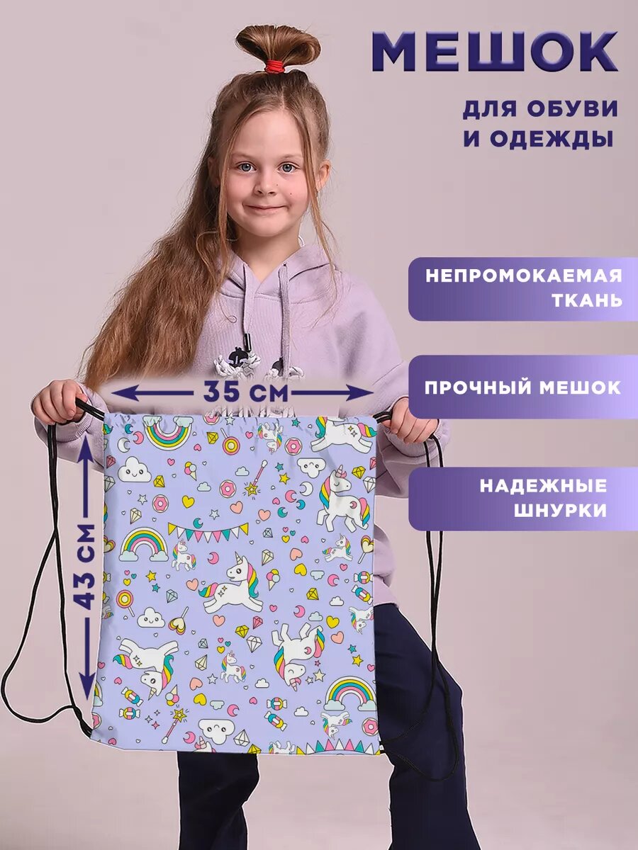 10 цен на Мешок для обуви сменки большой для девочек единороги
