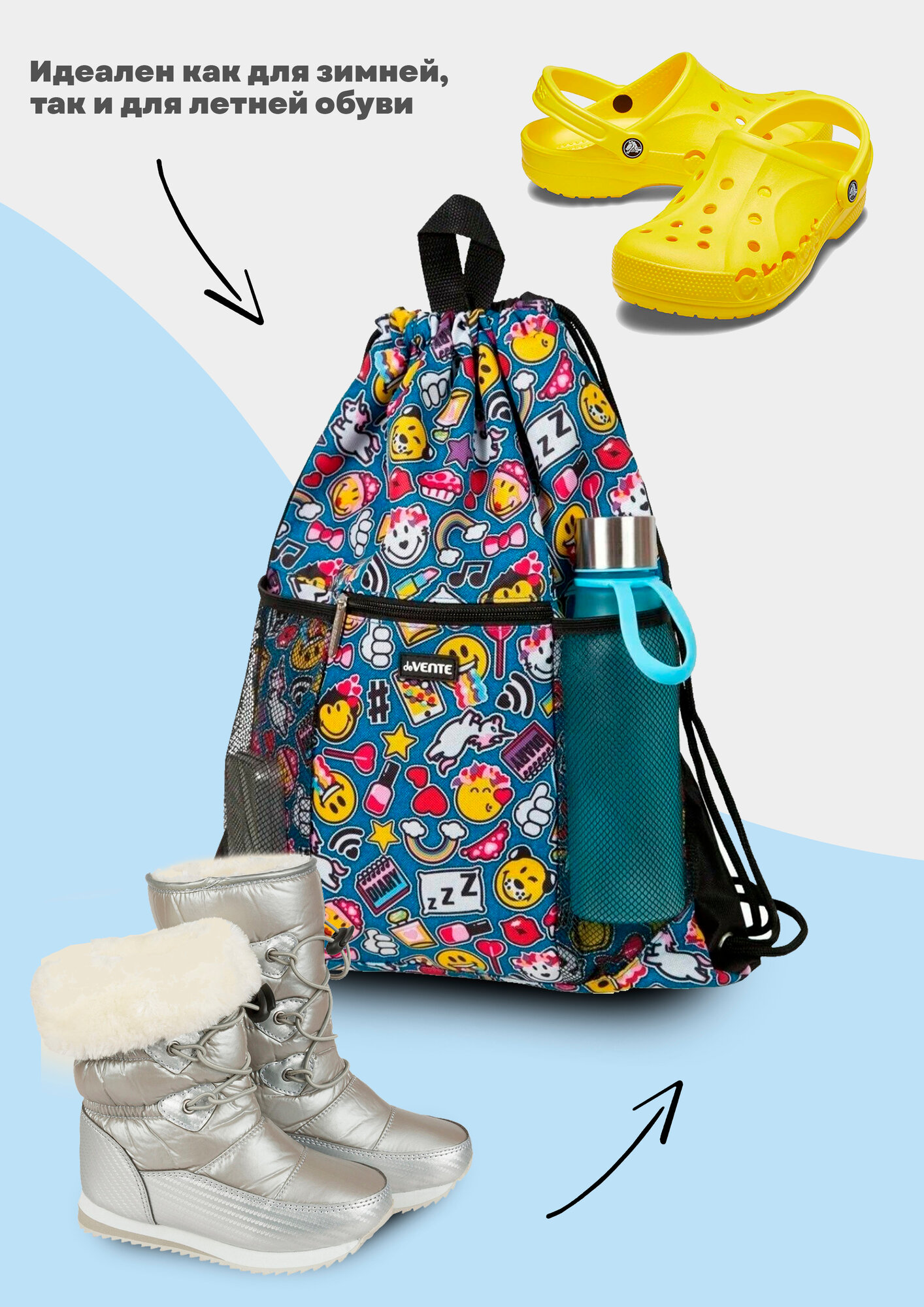 Сумка для сменной обуви deVENTE. Ergo. Denim Patches 37*47 см 1отд. карман, на завязке, карман на молнии, аппликация 7040187 информация: