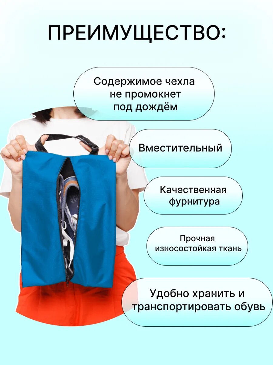 10 цен на Сумка чехол для сменной обуви мешок однотонный голубой