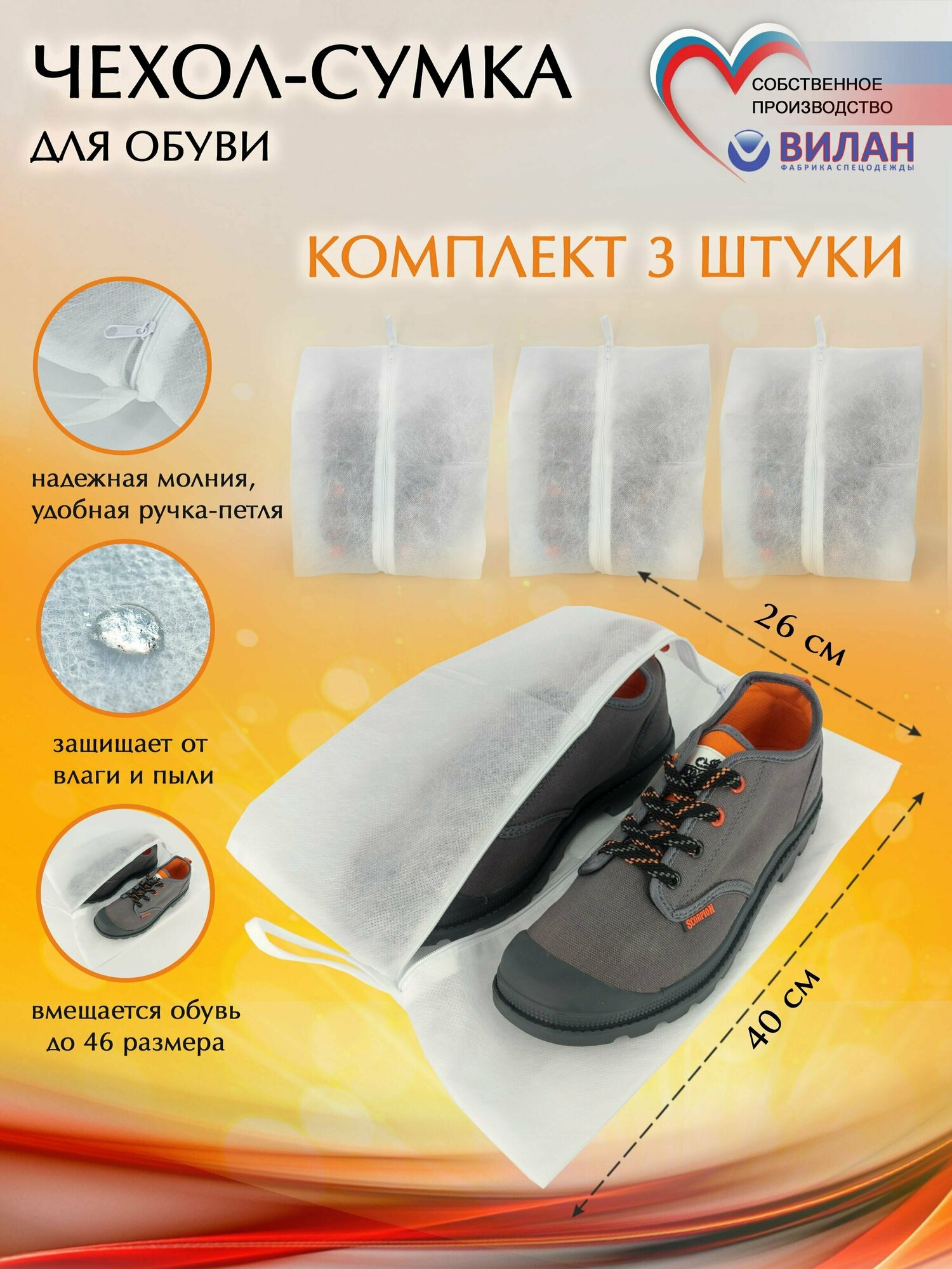 Отзывы на Чехол для хранения обуви Вилан, на молнии, спанбонд, белый, 26х40 см