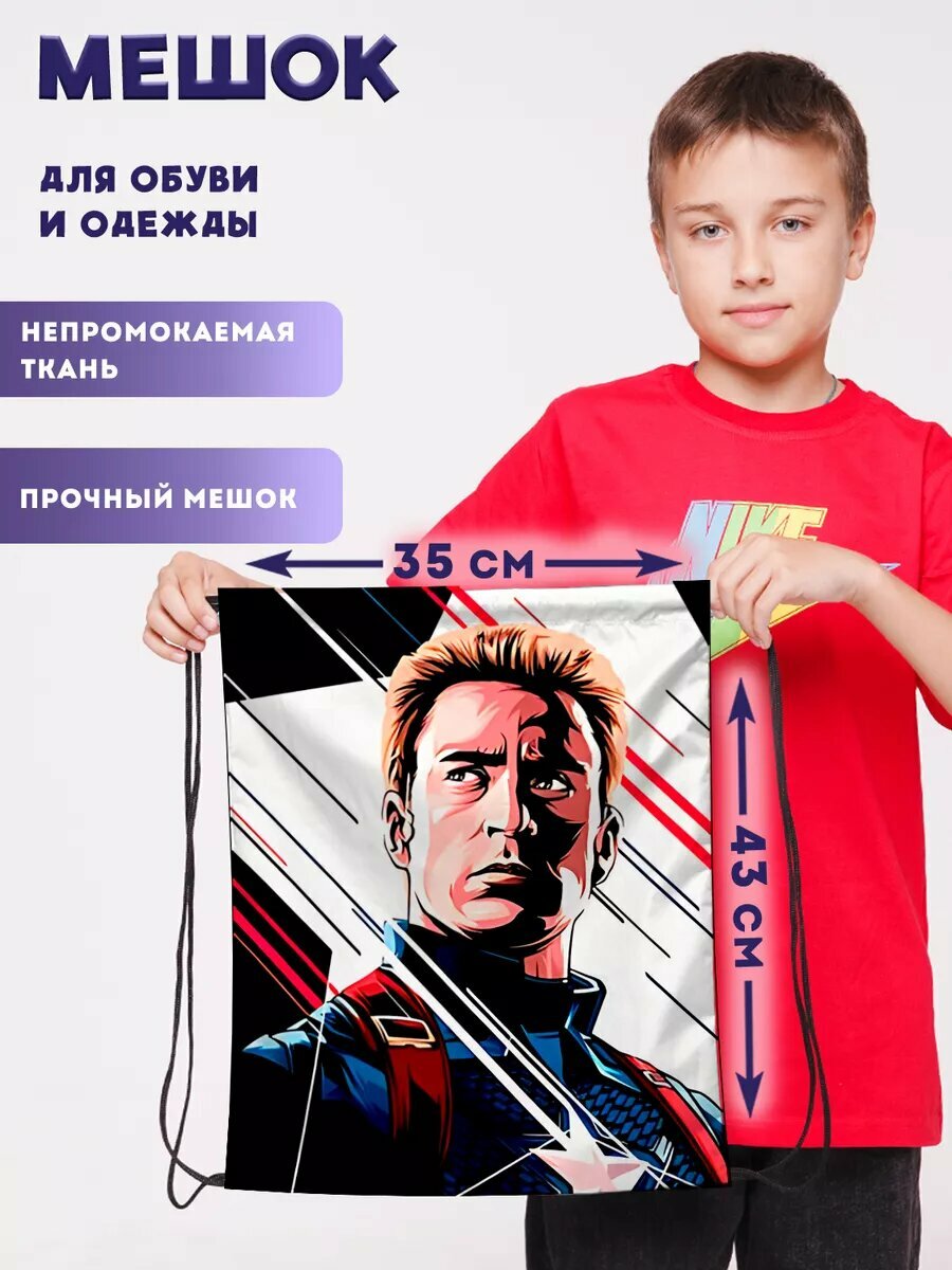 10 цен на Мешок для обуви сменки большой Капитан Америка Стив Роджерс