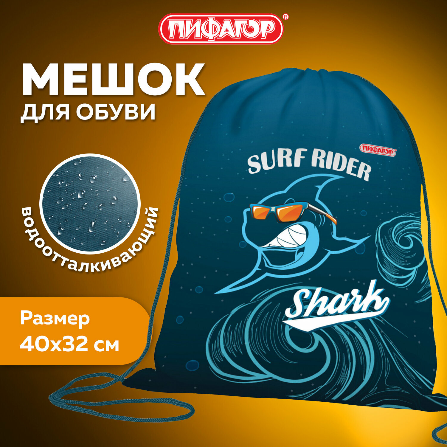Отзывы на Сумка - мешок, рюкзак для сменной обуви (сменки) Пифагор, 1 отделение, 40х32 см, Shark attack, 271604