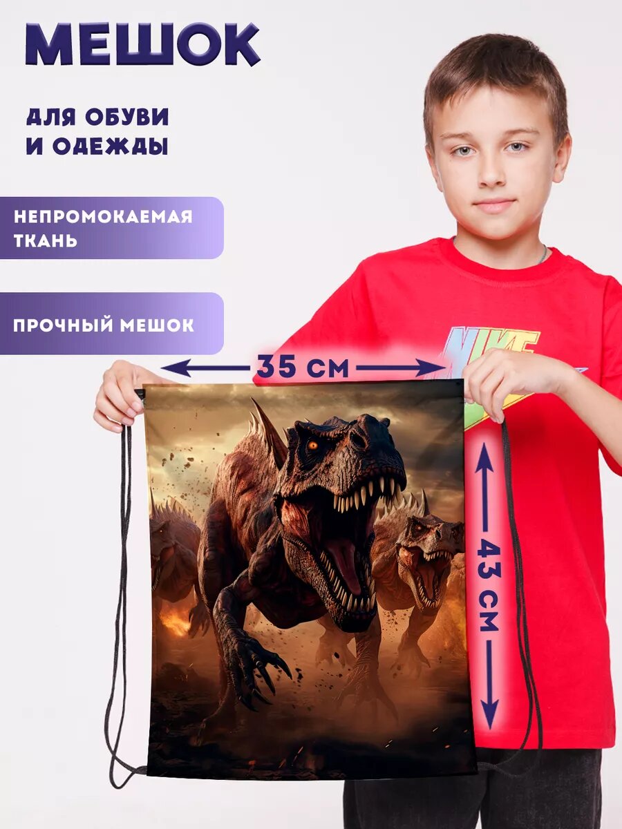 10 цен на Мешок для обуви сменки большой в школу динозавр