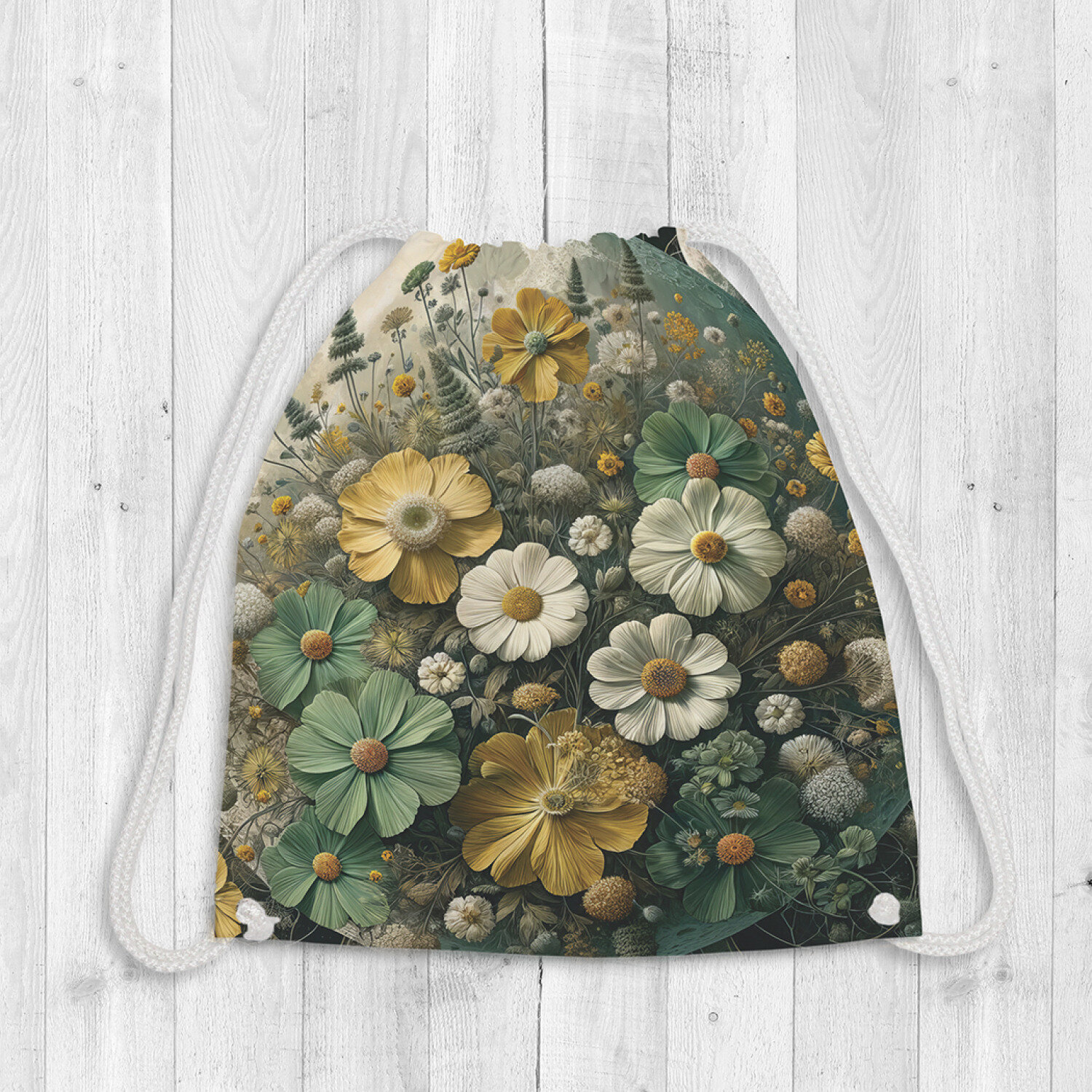 Сумка рюкзак-мешок для обуви и вещей с принтом "Лунные цветы", JoyArty, 38x40см информация: