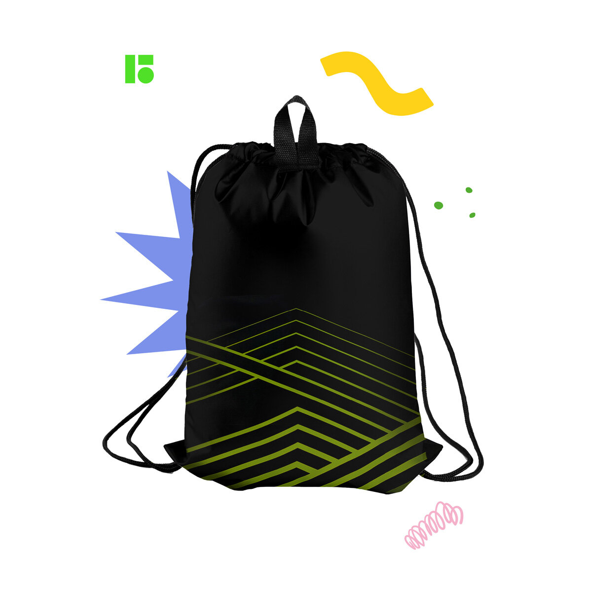 Отзывы на Мешок для обуви 1 отделение Berlingo "Black and green geometry", 360*470мм, карман на молнии