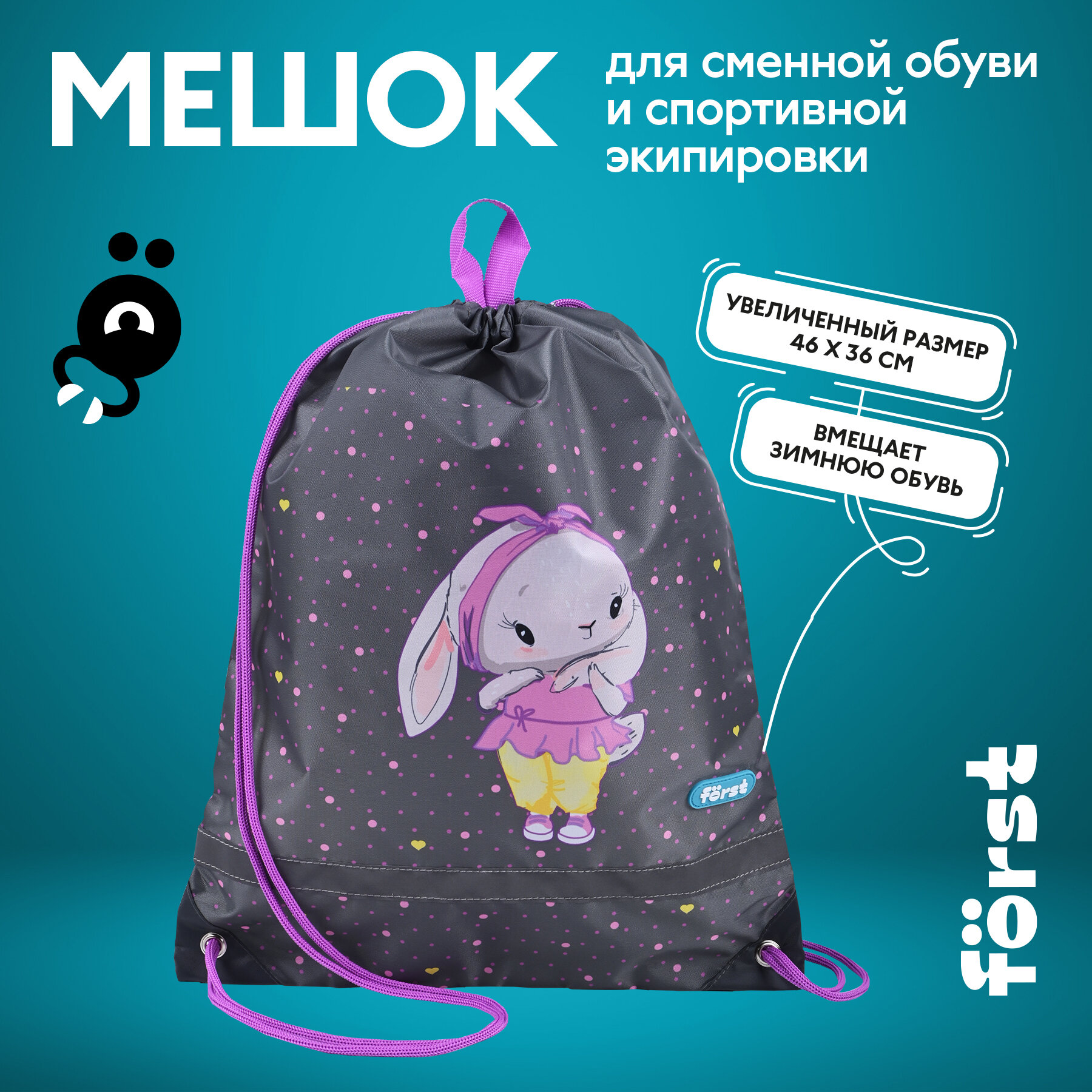 10 цен на Мешок для обуви 1 отделение Först "Grey bunny", 360*460мм, вентиляционная сеточка, светоотражающая полоса