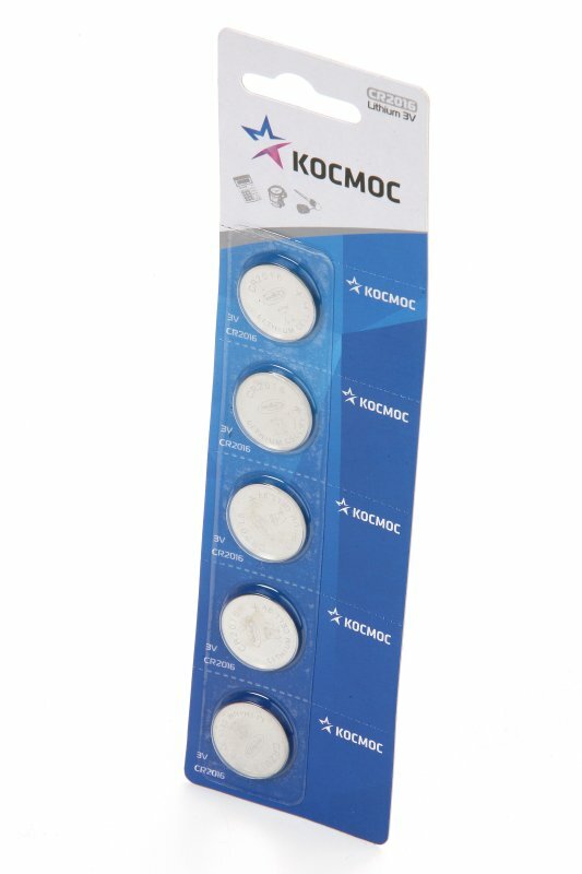 Батарейки литиевые - Космос, тип CR2016, 1.5V, 5 шт. в 1 наборе