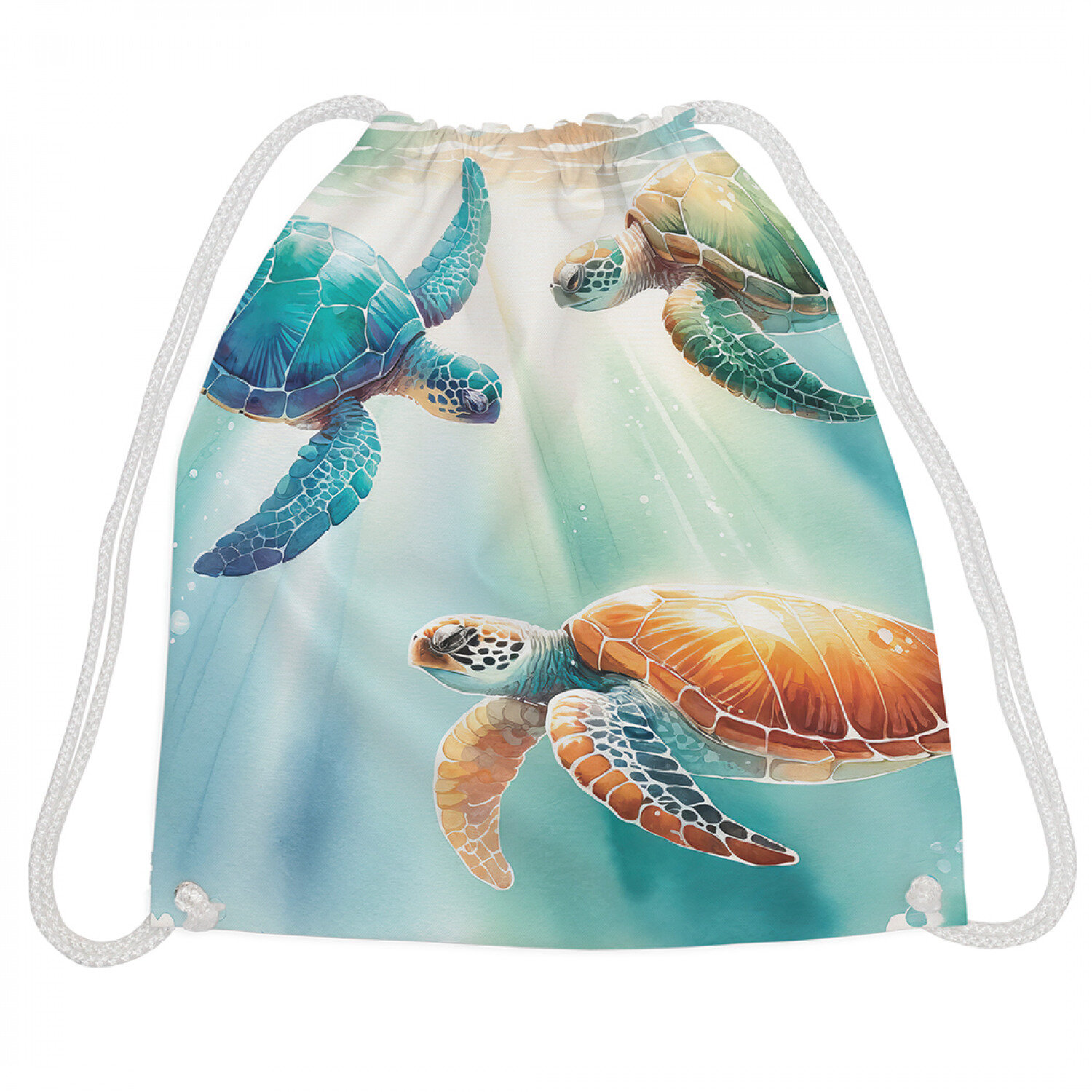 Сумка рюкзак-мешок для обуви и вещей с принтом "Черепахи в лучах", JoyArty, 38x40см информация: