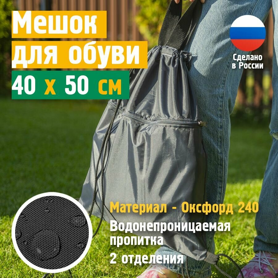 Мешок - сумка для сменной обуви JEONIX, водонепроницаемый 40х50 см, черный информация: