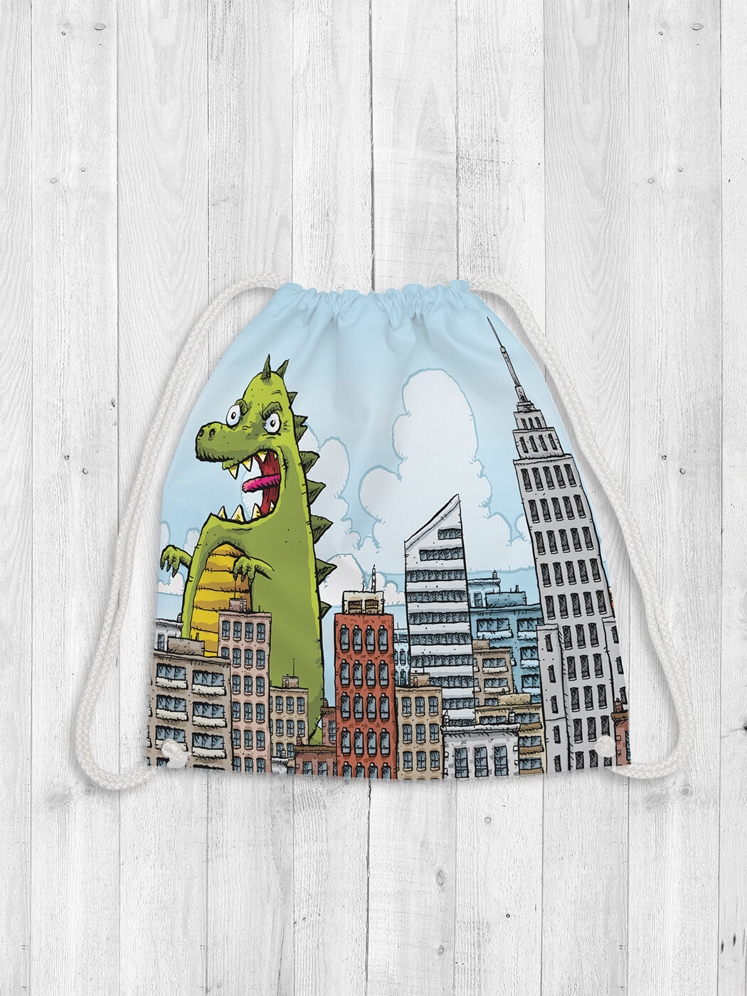Сумка рюкзак-мешок для обуви и вещей с принтом "Ярость динозавра", 38x40см , JoyArty информация:
